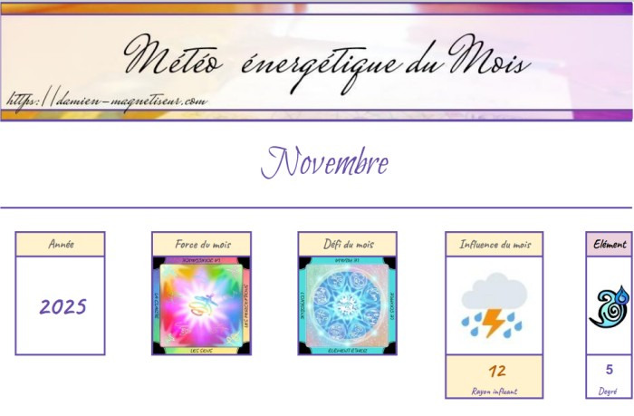 Voici la lecture des énergies du mois de novembre 2025.