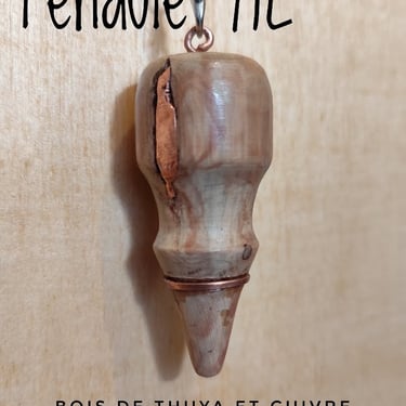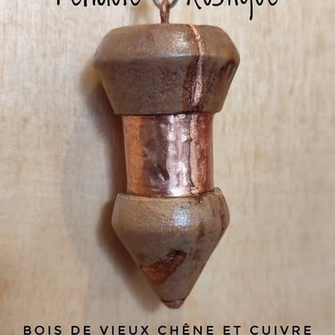 A la main je finalise et affine le pendule, utilisant les variations du bois et en intégrant certains éléments comme du cuivre ou des minéraux, pour révéler l'identité du pendule.